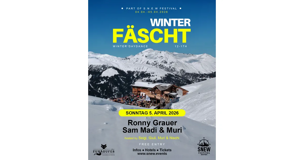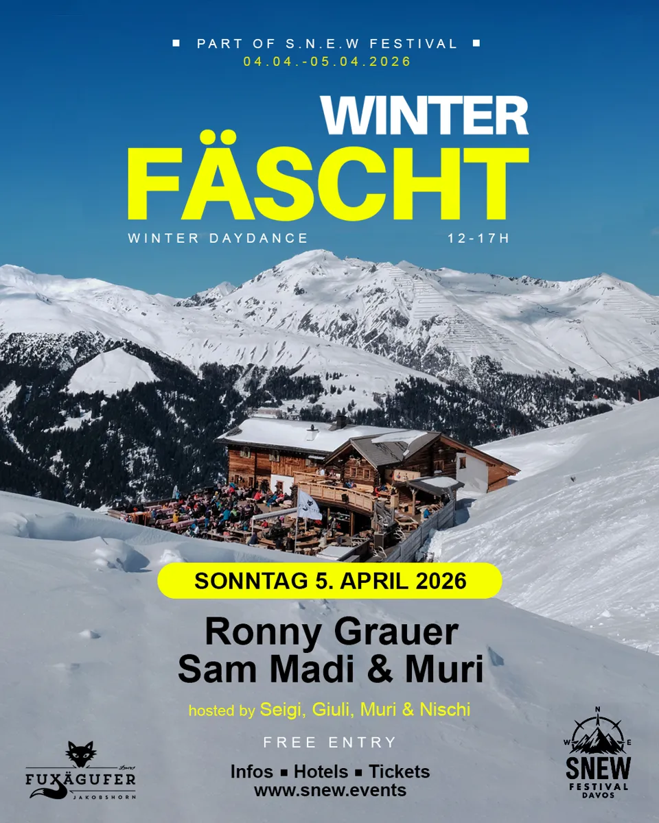 Das WINTER FÄSCHT ist Teil vom S.N.E.W. Festival welches über Ostern in Davos und auf dem Jakobshorn (Jatzhütte, Chalet Güggel & Fuxägufer) stattfindet. Wer also noch günstige Hotel Packages buchen möchte oder Tickets für die anderen Veranstaltungen buchen will, findet alle nötigen Info's im unten aufgeführten Link:
